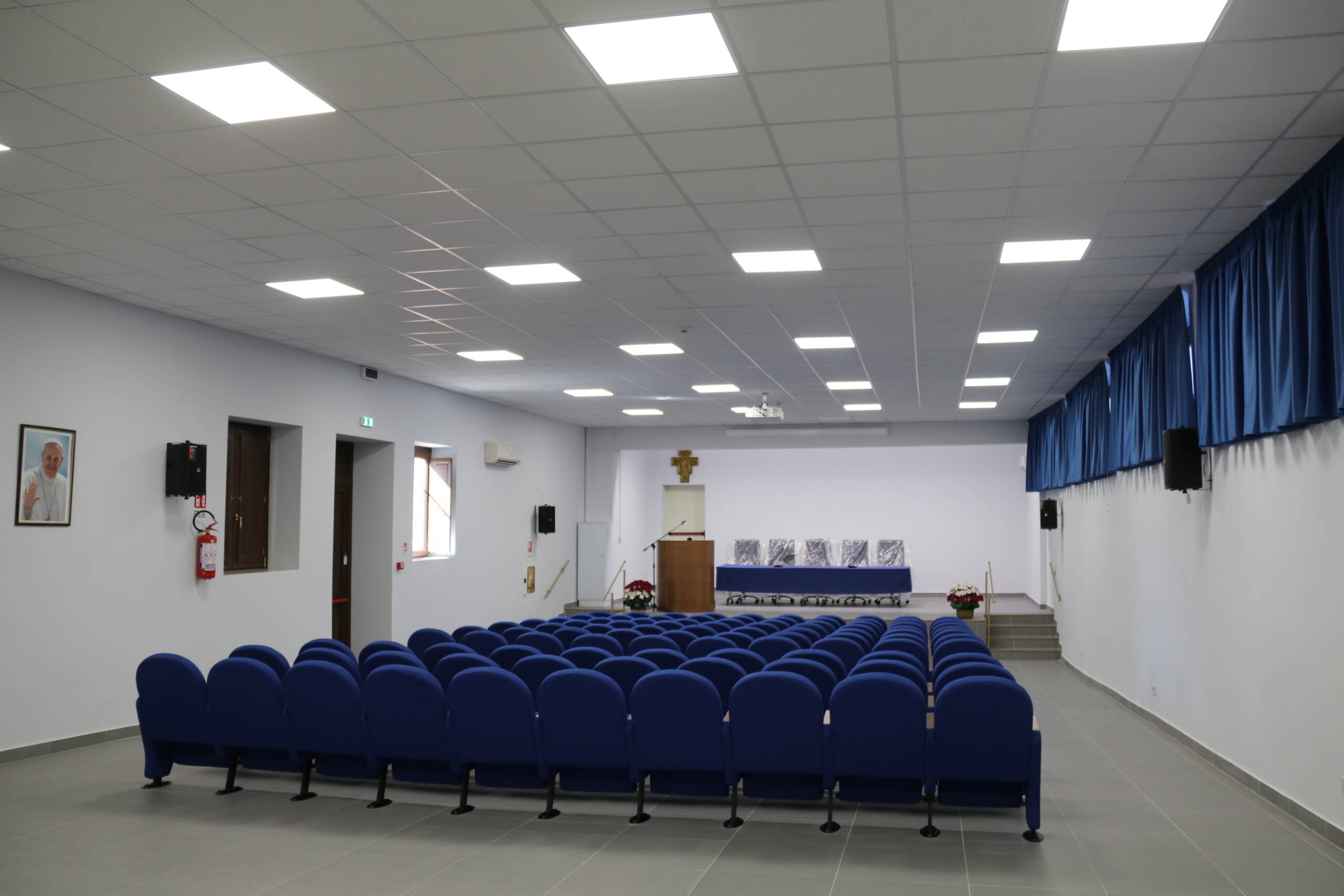 l’auditorium, tre sale per incontri e due sale mensa.